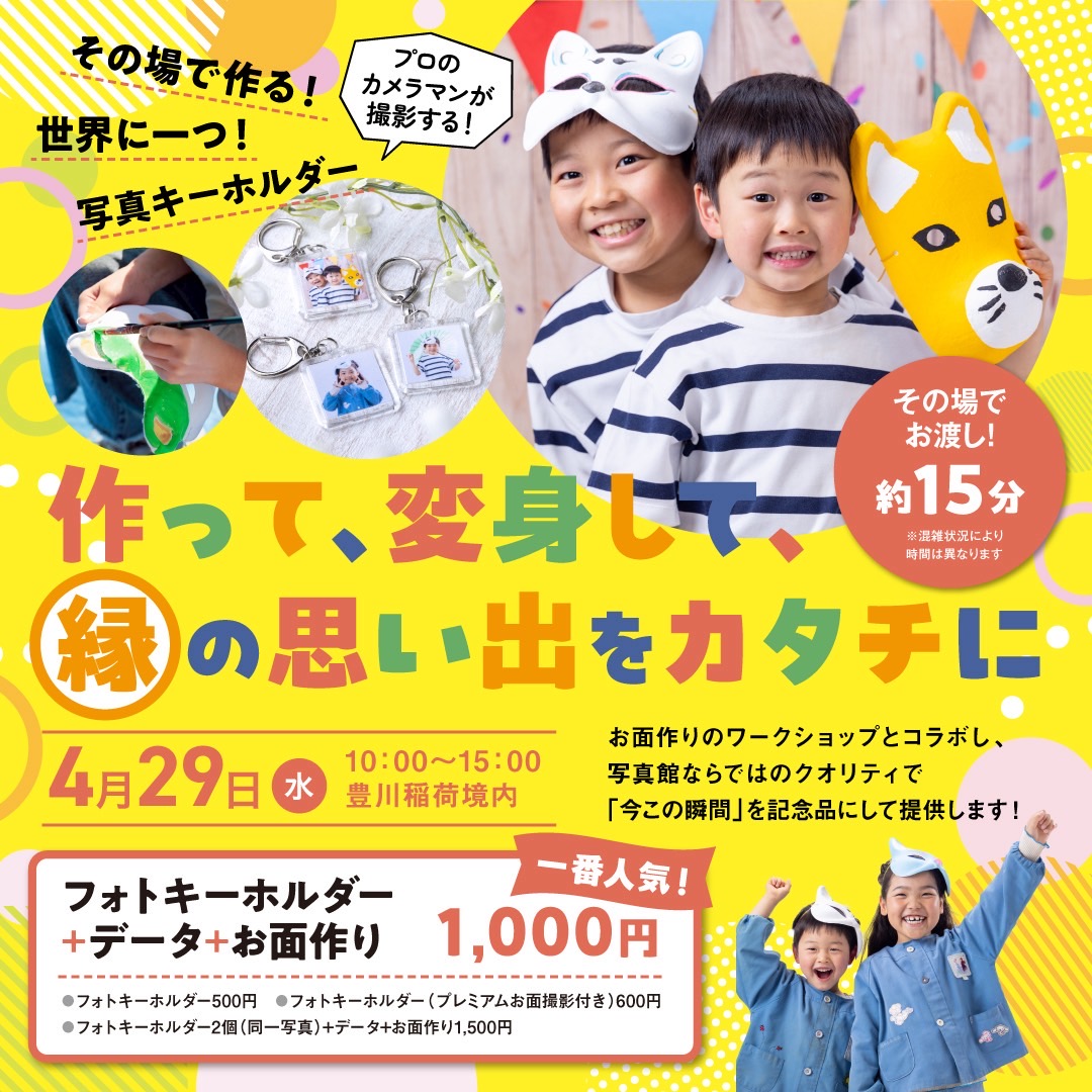 【4/29(水祝)開催】「豊川稲荷【縁】イベント|お面作りワークショップ&プロ撮影会で思い出をキーホルダーに