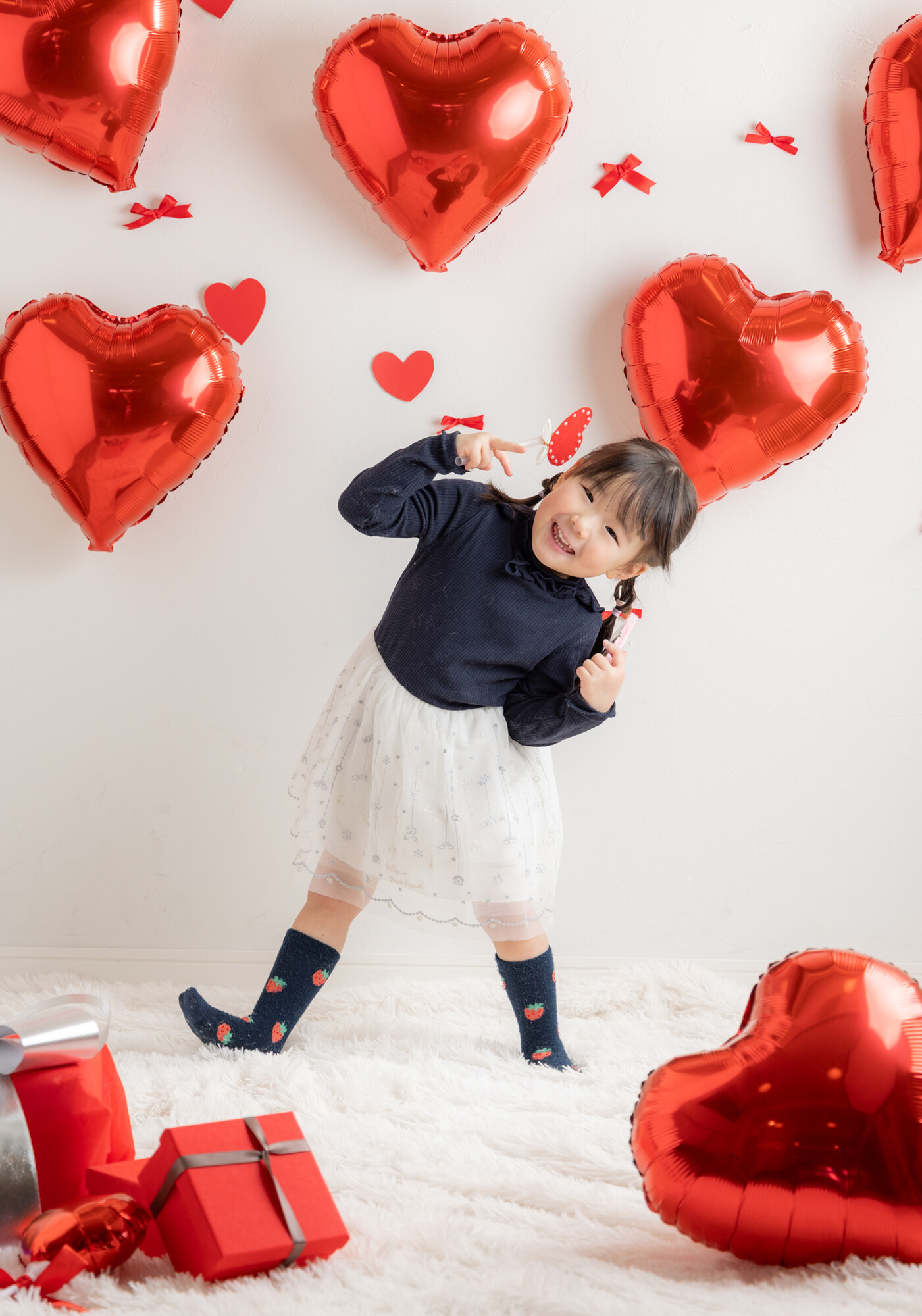 ハートの飾りや小物と一緒に、バレンタインらしい写真撮影を楽しんでいただき、かわいい笑顔がたくさん生まれました。